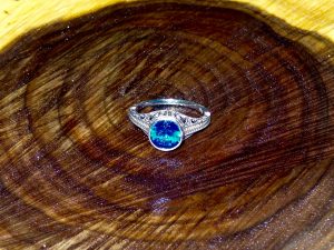 I ended up on Etsy one day and found a manufacturer that dealt in recycled gold and had a beautiful setting done in a classic style with scrolling, room for a stone to be set in it, and the ability to choose the stone. I don’t really like diamonds all that much and love sapphires (even though they’re not my birthstone!) and found out the retailer was in Chicago, so we took a trip to see it in person. I fell in love with the setting, found an Etsy shop in Maryland that dealt with creating lab sapphires, and soon, the ring was complete and mine.
